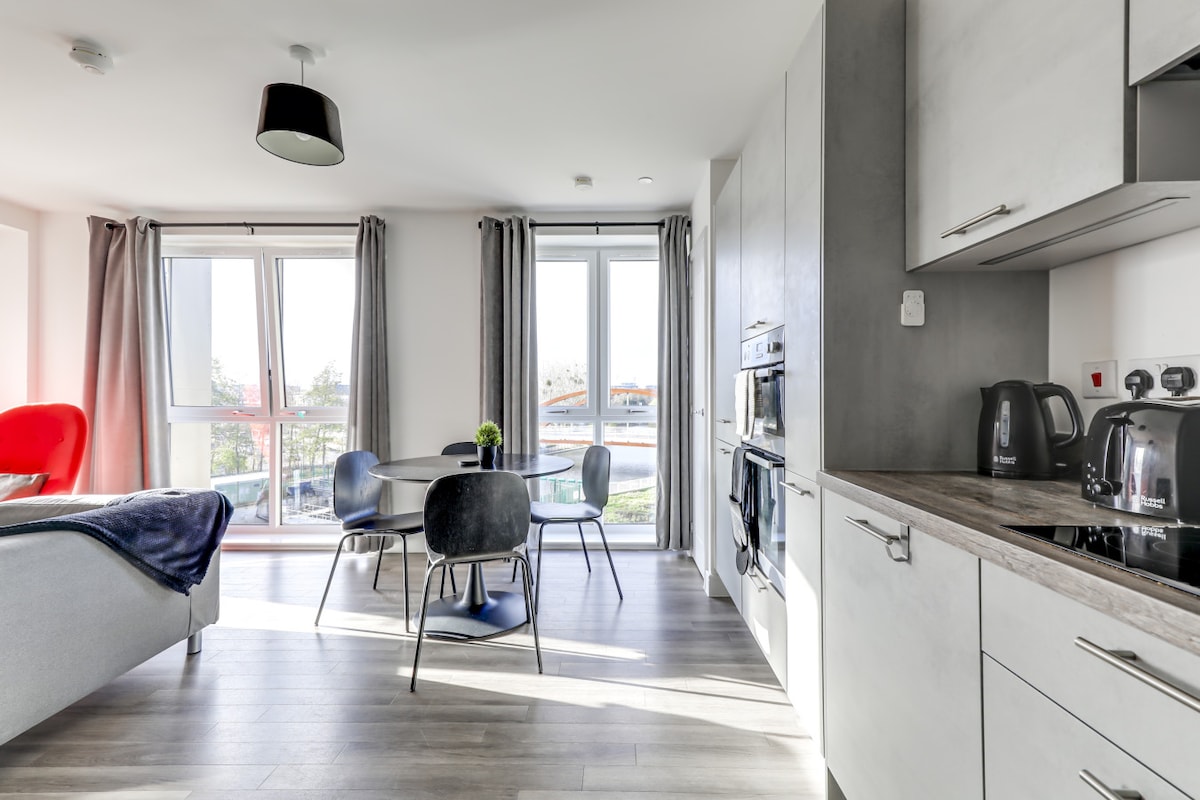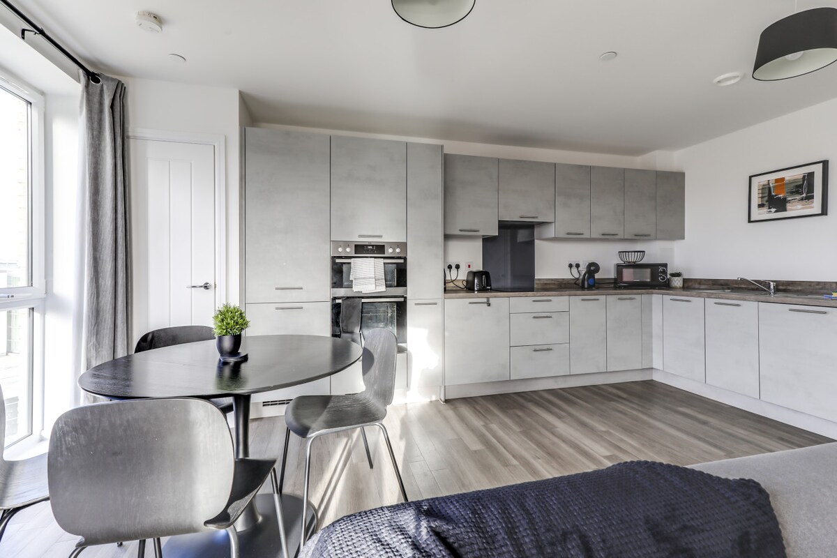 Upplifðu hagnýtt borgarlíf í hágæðaíbúð með tveimur svefnherbergjum og tveimur baðherbergjum með ókeypis bílastæði á staðnum, staðsett í hjarta Chelmsford. Þetta heimili er hannað með fagfólki og verktökum í huga og býður upp á fullkomið jafnvægi milli þæginda, hentugleika og rólegs hvíldartíma. Tilvalið fyrir teymi/einstaklinga sem þurfa áreiðanlega, streitulausa gistingu meðan á verkefnum stendur á svæðinu. Nærri helstu samgöngum - allt sem verktakar þurfa fyrir skilvirka og þægilega langtímagistingu