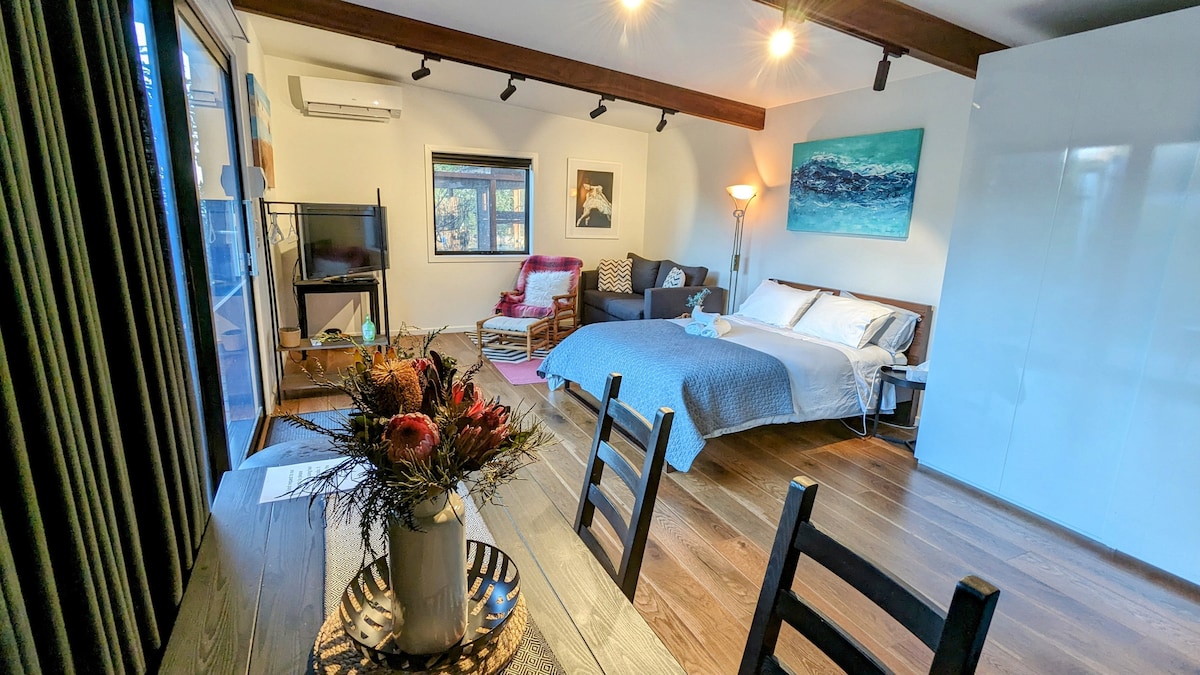Discover a hidden gem in Oakleigh East! This family-friendly, one-bedroom guest house is tucked behind the main residence, offering both privacy and the convenience of having a helpful host just steps away. The main bedroom features a luxurious king-sized bed and a double-sized sofa bed /work station. With a separate entrance for the guest house, you can come and go with ease. Enjoy a fully equipped kitchen, complete with a coffee machine. Embrace a family-friendly, tranquil escape.