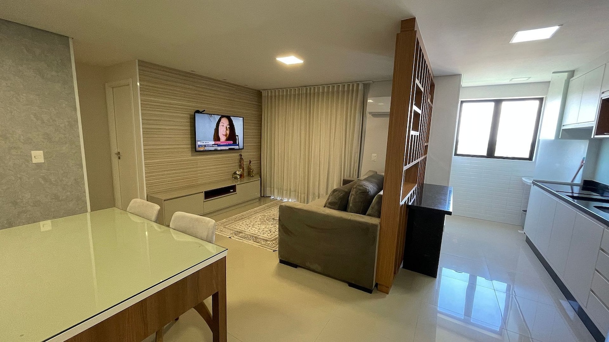 Nútímalegar 120 m² íbúðir fyrir allt að 10 gesti í miðbæ Foz do Iguaçu. Þægindi, tækni og móttaka allan sólarhringinn. Fullbúið eldhús, einkagrill, loftkæling í öllum herbergjum og ókeypis bílastæði fyrir 2 ökutæki (með bókun). Íbúðin býður upp á fullbúnar tómstundir: sundlaug, upphitaðan nuddpott, gufubað, líkamsrækt, barnaherbergi, leikjaherbergi, vinnurými, snyrtistofu og markað sem er opinn allan sólarhringinn.