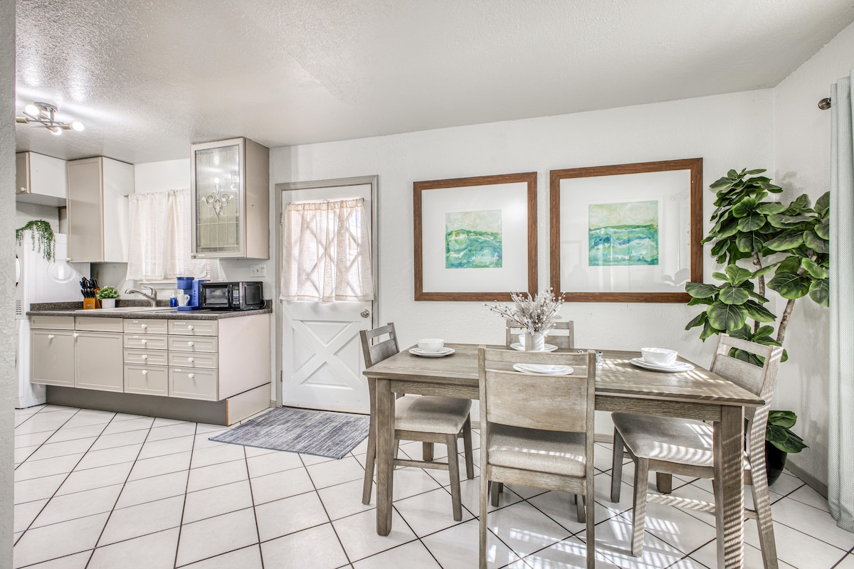 Þetta sjarmerandi 2 BR/ 1 BA heimili í miðborg El Paso bíður þín. Þú verður að vera ánægð með fulla notkun á háhraða WIFI og snjallsjónvarpi . Haltu eigninni upphitaðri og kældu eftir þínum þörfum með klofinni klofinni einingu sem hægt er að stjórna. Í göngufæri er hægt að njóta frábærs matar og frábærs útsýnis. 10 mínútur frá flugvellinum, með greiðum aðgangi að FORT bliss, UTEP, sjúkrahúsum nálægt og FJÖLLUNUM!! Njóttu heimilisins okkar!