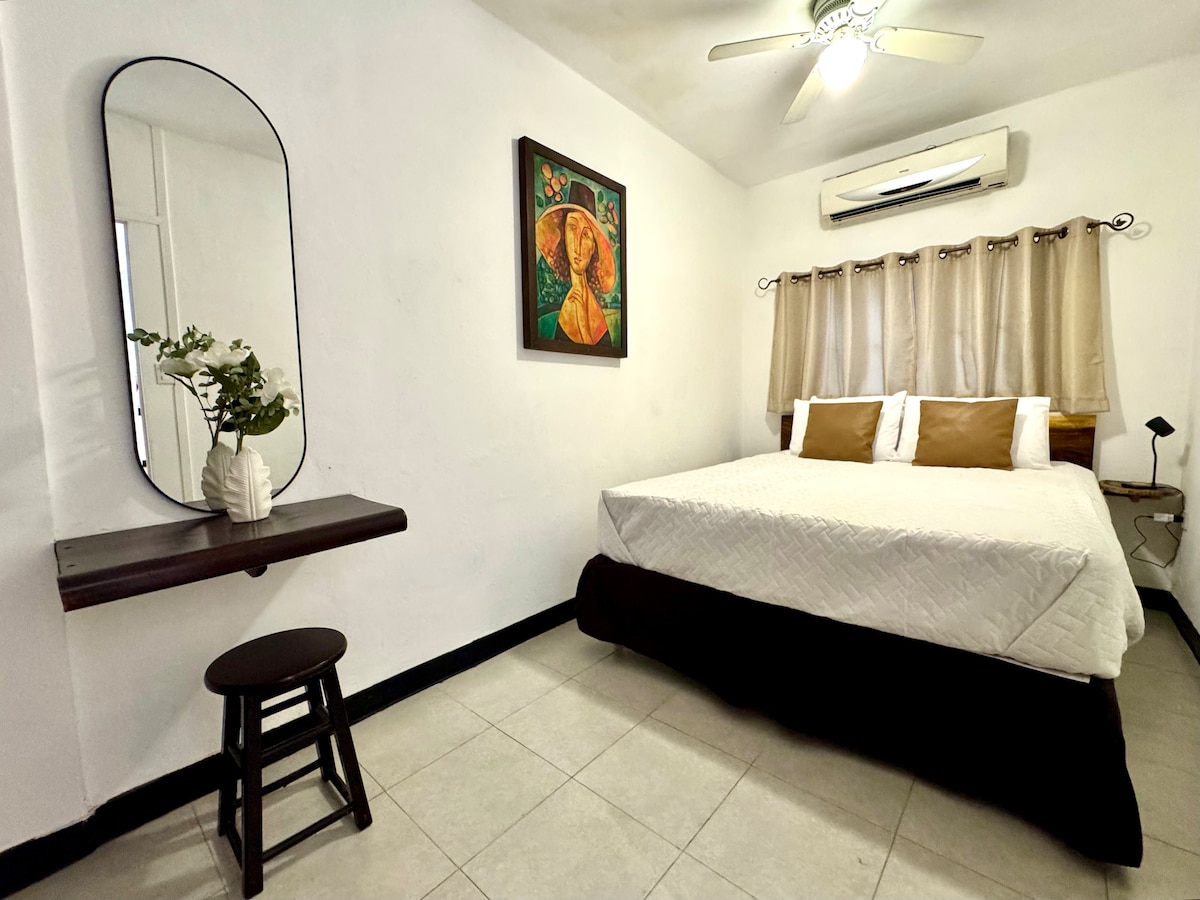 Private 1 bedroom suite with air conditioning located just a short walk from the supermarket, best shopping malls, and restaurants in the capital Bus stop is just 1 minute away, 1 block from Zona Rosa and regional bus stations are within a 5-minute walk. We provide secure parking for your vehicle Location offers an affordable and convenient way to explore all the main tourist attractions San Benito neighborhood is the capital's hotel and tourist zone