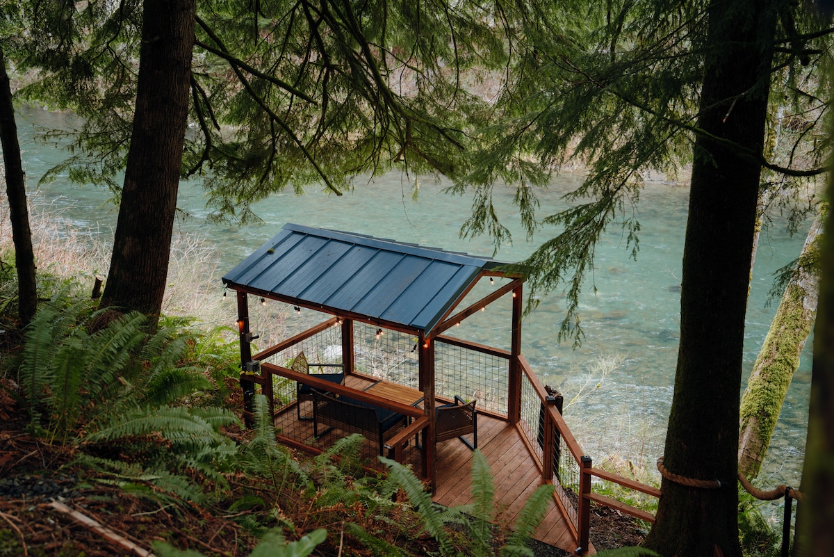 Staðsett í Olympic National Forest, uppi á jaðri Sutherlands-vatns - þú munt finna þig í ótti af útsýni yfir að því er virðist lifandi og síbreytilegt að mála bara út um stóra vatnið sem snýr að gluggum Owl Pine. Mínútur ganga niður að einkaströnd með stórum bryggju og eldgryfju umkringd þægilegum Adirondacks, þú munt skemmta þér inni eða úti með þessum duttlungafulla skála fullan af leikjum, þrautum og ógleymanlegum næturhimni! AWD + Carrying Chains required in Winter.
