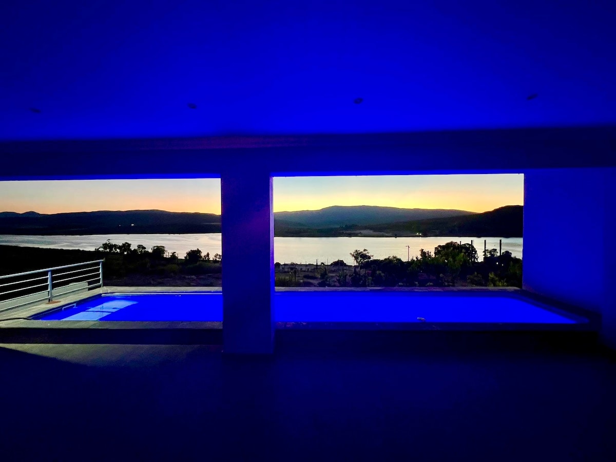 This stylish home is situated on an elevated position within a gated and patrolled security estate with magnificent views over the Clanwilliam Dam. The estate has roaming security, monitored perimeter cameras and ample boat and off street parking. The perfect home for the watersport and outdoor enthusiast. The kitchen counter doubles as a perfect place to set up your laptop to have a comfortable working space. Enjoy magnificent sunsets while having sundowners next to the 9m pool.