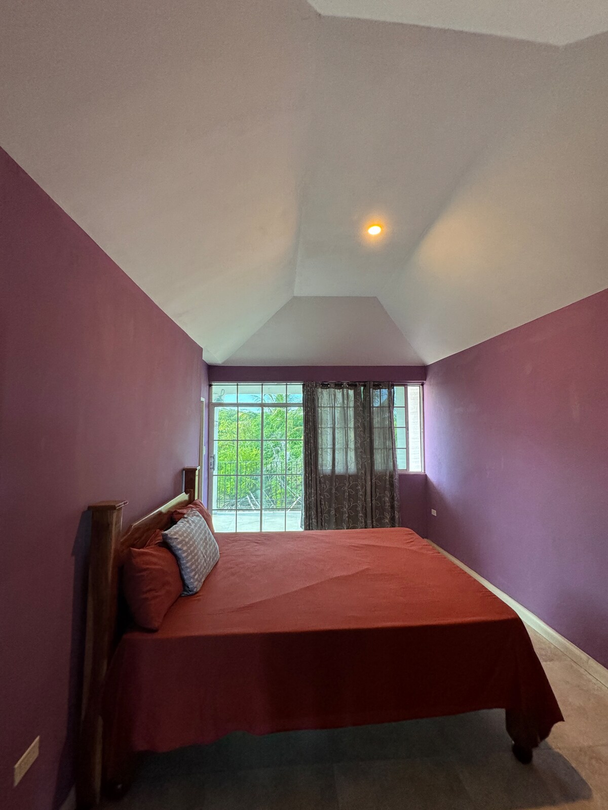 In our Blue Ocean View Bedroom on the 2nd floor the whole group, including family and friends can enjoy a comfortable stay in this spacious bedroom with a queen size bed, a washroom with standing shower and a balcony that looks out into the serene greenery, ocean and port making it a surreal and unforgettable experience that you won’t forget!