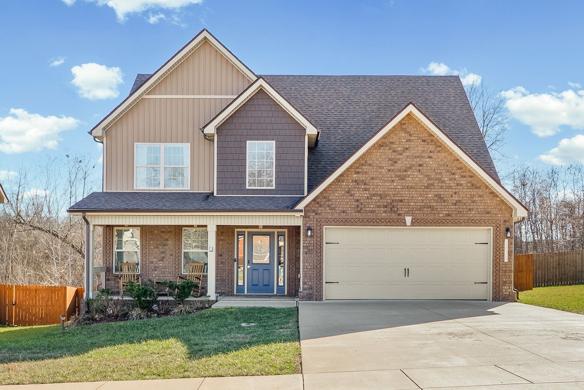 Nýuppfært 3BR/1BA heimili með pláss fyrir 7 manns. Innkeyrslan tekur 3 bíla með ókeypis bílastæði við götuna ef þörf krefur. Þetta heimili er fullbúið með þráðlausu neti, öryggismyndavélum að utan, viðvörunarkerfi fyrir glugga og hurðir til öryggis og þæginda, snjallsjónvarpi í öllum herbergjum, eldhúsi með hversdagslegum tækjum, arni, þvottavél/þurrkara, grillgrilli, eldstæði með setusvæði, heitum potti og afgirtum bakgarði. Mall 2mi, APSU 4.9mi, Oak Grove Casino 11.8mi, Fort Campbell 14mi, Vineyard/Winery 3.8mi, & Nashville 45-50min.