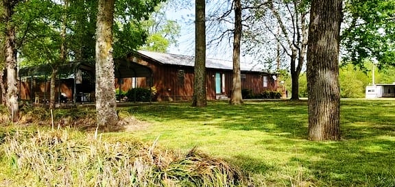 Large cabin on the Current River. Peaceful spacious area great for get togethers, boating, fishing, and swimming from private access with dock. Has small sand beach area when the river is down. Outdoor covered cooking area great for grilling with a pellet smoker, gas, or charcoal grill. The patio has the most amazing view. Bring a book and enjoy the peaceful serene backyard. Hunters Welcome! Close to Dave Donaldson Wildlife Refuge.