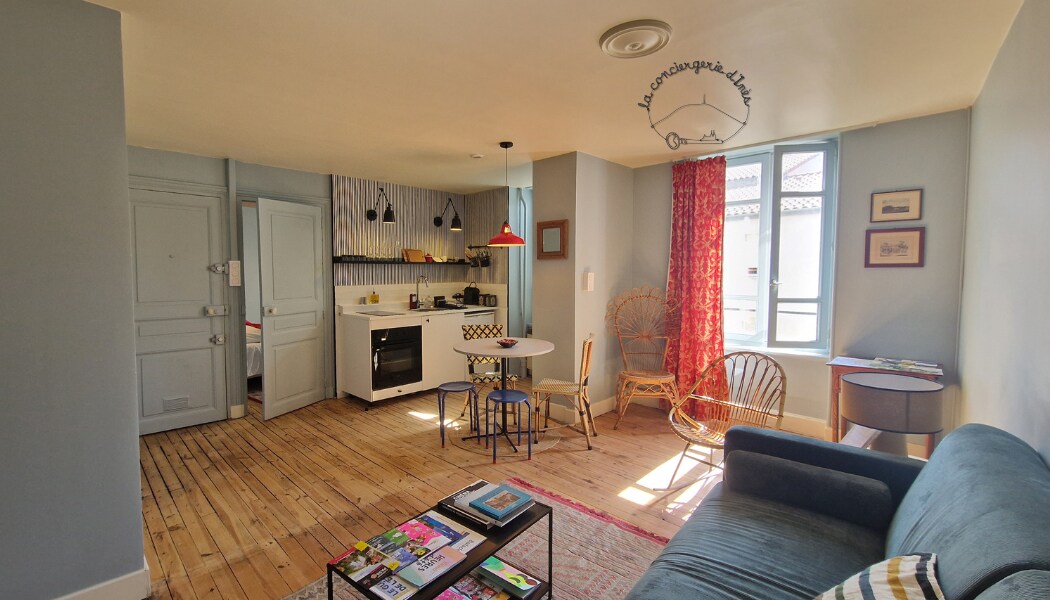 Appartement 40m² plein centre de Clermont-Ferrand (plateau central) dans le quartier animé ancien des beaux-arts, à deux pas de la place de Jaude et de la cathédrale dans un immeuble ancien typique en pierre de lave du 17ème siècle. 40m² apartment in the center of Clermont-Ferrand (central plateau) in the lively old fine arts district, a stone's throw from Place de Jaude and the cathedral in a typical 17th century lava stone building.