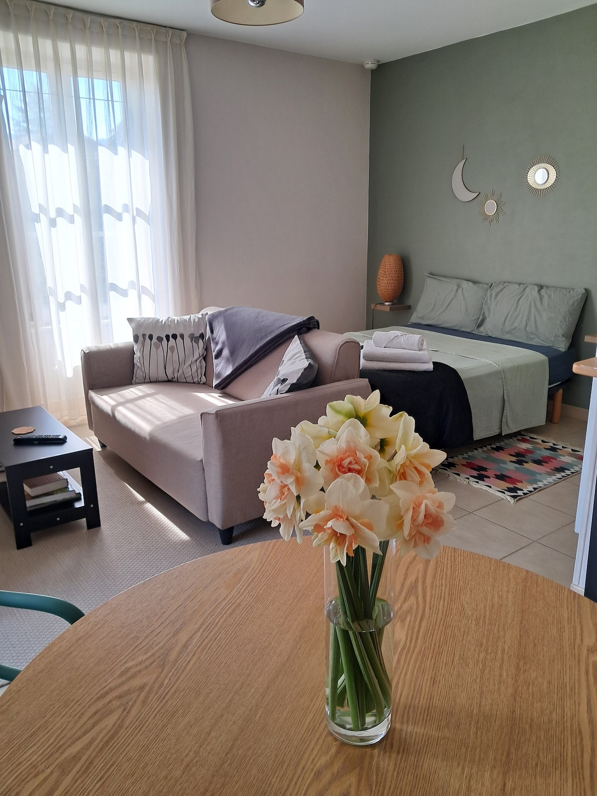 Komdu og njóttu kyrrðar í þessu fyrrum vínframleiðanda og bóndabýli sem er alveg uppgert í hjarta Mâconnais sem er í 5 mínútna fjarlægð frá útgangi A6 Mâcon Nord tollsins. Njóttu þægilegs 40 m2 svæðis. Loftkæling, fullbúið eldhús, svefnherbergi með 140 rafmagnsminnisrúmi, baðherbergi með ítalskri sturtu, sjónvarp, einkaverönd, öruggt og lokað bílastæði, 2 sæta svefnsófi...