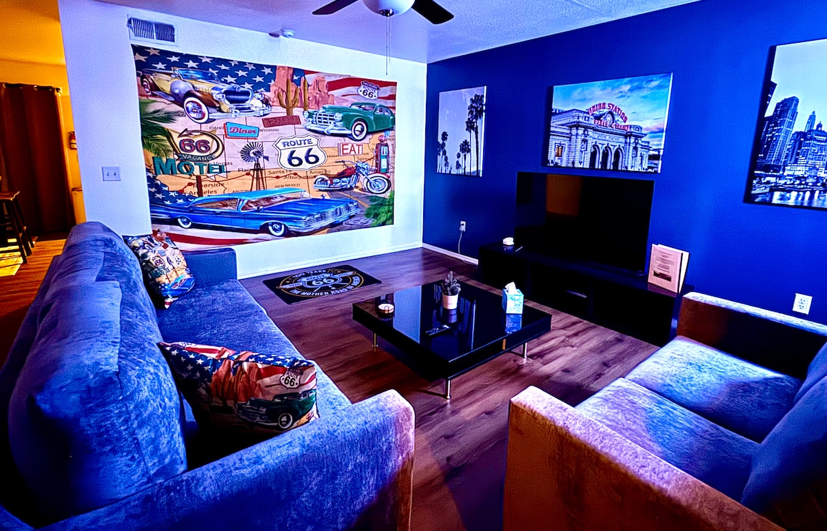 Verið velkomin í einkastaðinn ykkar í Flagstaff sem nýtir sólarorku! Þriggja herbergja gestaíbúðin okkar er fullkomlega staðsett í nýjasta hverfi borgarinnar með myrkri himinhvolfi. Þú ert við sögufrægu Route 66 og aðeins nokkrar mínútur frá miðbænum meðfram járnbrautunum. Skoðaðu bæði gönguleiðir okkar í borginni og uppáhaldsstaði heimamanna (stafrænn leiðarvísir fylgir). Þú deilir innkeyrslunni okkar en við erum fegin að vera eins nálægt eða eins langt í burtu og þú vilt meðan á dvölinni stendur. Netflix, hratt internet, gæludýravænt, morgunverður, þvottur að beiðni.