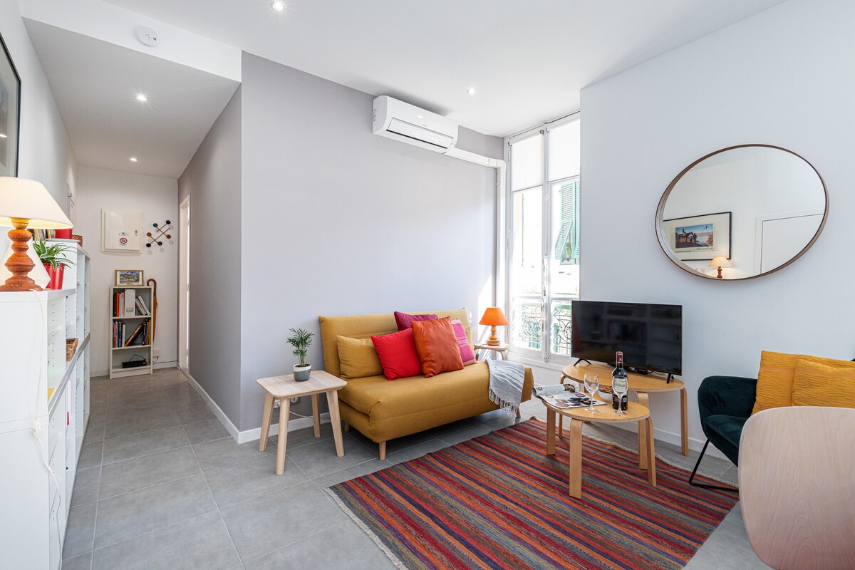 111 M2 - 2 svefnherbergi, 2 baðherbergi, 2 salerni Le Port - Rue Bonaparte: Í hjarta líflegs og eftirsótts hverfis, nokkrum skrefum frá Place Garibaldi, 3 óvenjulegum herbergjum sem eru innréttuð af þekktum innanhússhönnuði. Glæsilegt magn með fallegri stofu sem er um 70 m2 að stærð og sameinar eldhúsið, borðstofuna og stofuna. Í íbúðinni er heimabíó ÓKEYPIS, EINKABÍLASTÆÐI OG ÖRUGGT BÍLASTÆÐI Í BOÐI