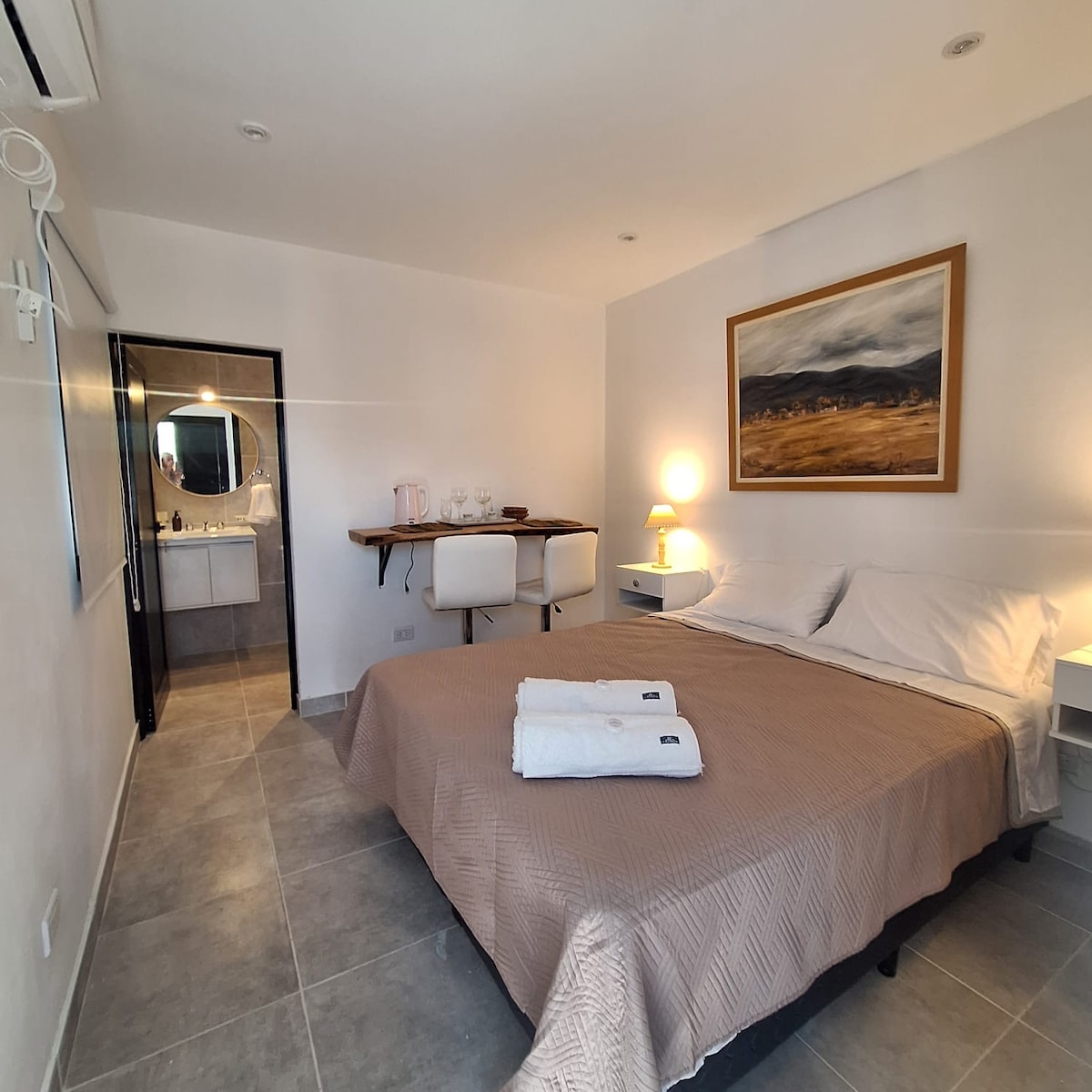 Slakaðu á í þessu einstaka og rólega húsnæði. Íbúðirnar okkar veita þægindi og næði. Hægt er að njóta útsýnis yfir hæðirnar úr galleríinu. Sameiginlega rýmið býður upp á sundlaug og hægt er að njóta sólarinnar undir gömlu Torrontes. Við bjóðum upp á yfirbyggð bílastæði á staðnum.