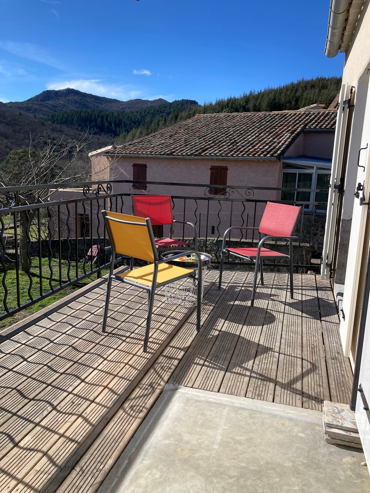 Í Cevennes þjóðgarðinum á bökkum GR 6-7 verður þú að vera í þessu húsi með töfrandi útsýni yfir 50 km af fjallinu frá stórum ríkjandi verönd. Fyrir einhleypa eða par. Stórt 30 m² herbergi með sjálfstæðu baðherbergi og fullbúnu eldhúsi. Internet allan sólarhringinn. Tilvalið rými fyrir afslöppun og fjarvinnu. Rúmföt eru til staðar. Náttúruleg laug frá miðjum maí til loka september eftir hitastigi. Athygli, íþróttaaðgengi eftir gönguleið og tröppum.