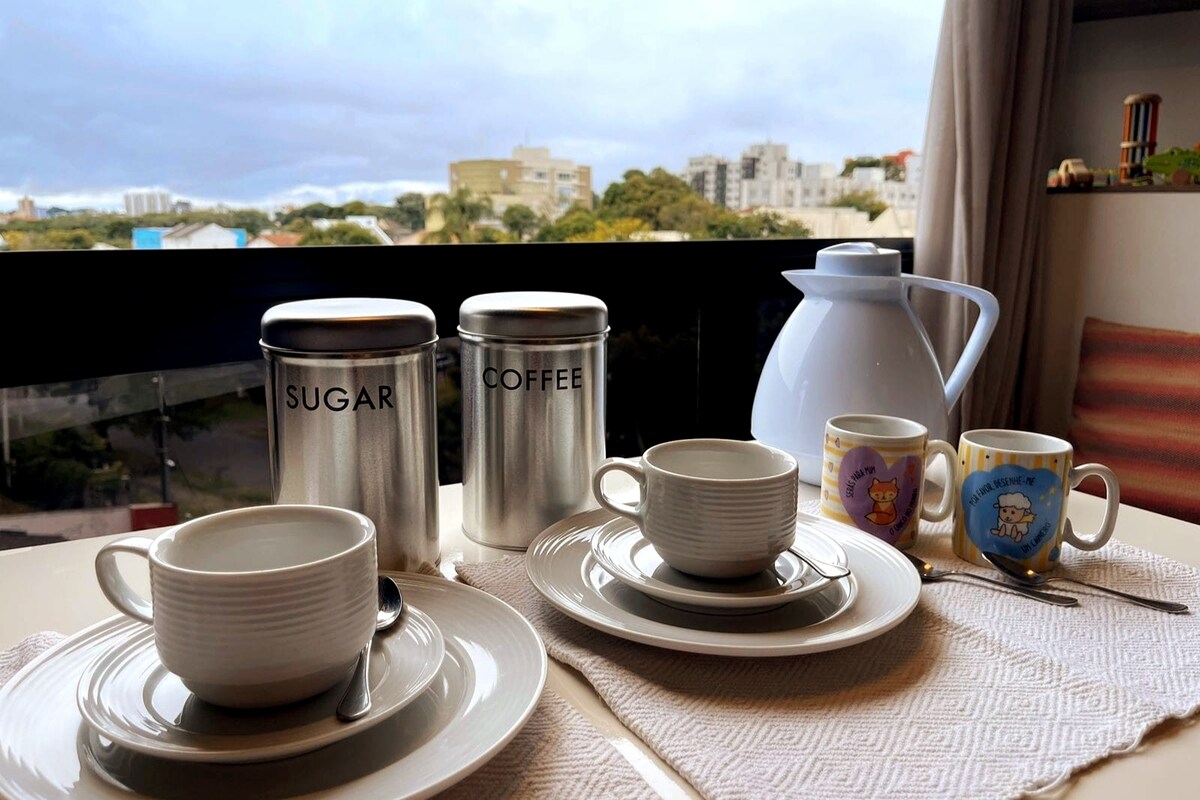 Stúdíó skipulagt fyrir komu David: fjölskylduvænt! Gistu í einu af rólegustu hverfum Curitiba, í 15 mínútna fjarlægð frá miðborginni, fullt af trjám og útsýni sem nefndi svæðið: „Boa Vista“. Finndu allt í nágrenninu: apótek, markaði, bakarí, bari og veitingastaði. Íbúðin er fullbúin með öllu sem gestir eru einir á ferð eða fjölskylda með 02 fullorðna og allt að 03 börn þurfa - þar á meðal ungbarnarúm, baðker og leikföng! Þráðlaust net, þvottahús og bílskúr.