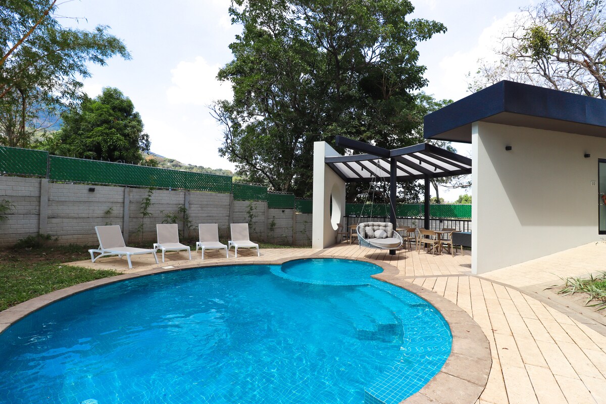 Upplifðu einstaka dvöl í nútímalegri íbúð í San Salvador! 🌄 Láttu undrast af útsýni yfir San Vicente-eldfjallið og Ilopango-vatnið, með gylltum sólarupprásum ☀️ og sólarlagi sem lýsir upp borgina ✨. Fágaðar innréttingar, náttúrulegt birgðir og þægindi á öruggu svæði 🏡. Fullkomið fyrir afslöngun 😌 eða vinnu 💼. Aðeins 5 mín. frá veitingastöðum🍴, verslunum🛍️ og næturlífi🎉, 30 mín. frá sögulega miðbænum🏛️ og 45 mín. frá flugvellinum✈️. Njóttu líflegu höfuðborgarinnar! 🚀