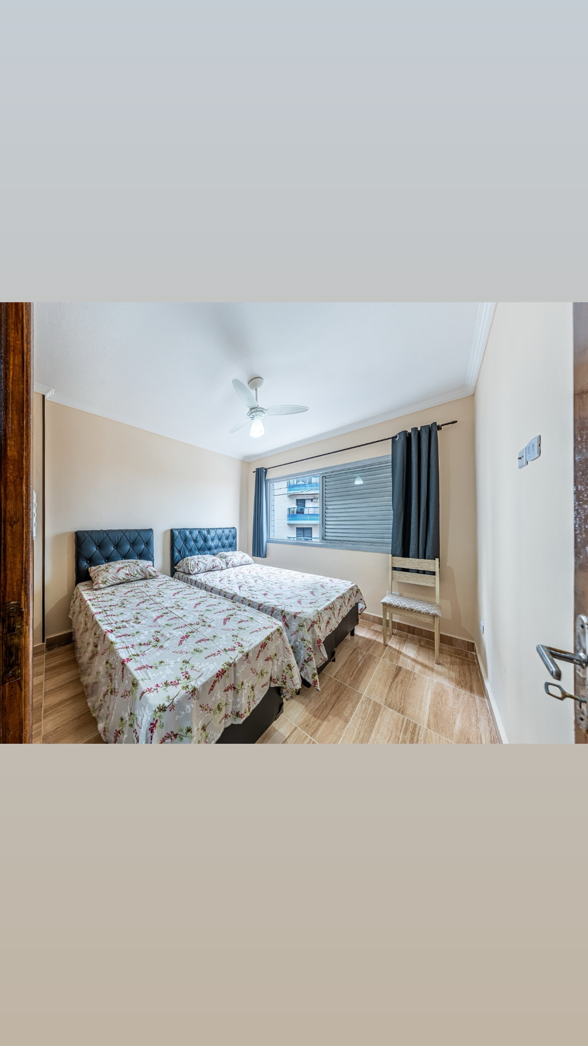 Íbúð björt, allt úr postulíni og vel loftræst. Það eru 2 svefnherbergi, eitt með baði og annað svefnherbergi með 3 einbreiðum rúmum. Ég er einnig með svefnsófa í stofunni sem rúmar 2 manns, en hann er ekki eins þægilegur og opni sófinn í stofunni, en ég get hýst allt að 7 manns. Við bjóðum upp á tvö sjónvörp, stóra spegla, viftur, eldavél, örbylgjuofn, kaffivél, hitatank, krana með síu, ísskáp, blandara, rafmagns hrísgrjónapott, þrýstikatel, ryksugu, kælir.