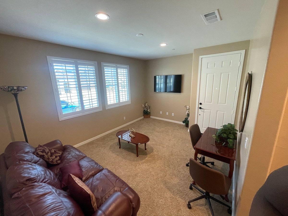 Taktu þátt, komdu og slakaðu á í þessu NÝJA líflega og stílhreina rými að aftan. Hér er eitt hjónaherbergi með king-size rúmi og sérbaðherbergi, sjónvarpi með Netflix. Sendu gestinn þinn í annað svefnherbergið, einnig með king size rúmi og sjónvarpi, og leyfðu þeim eina vini að sofa í svefnsófanum með öðru sjónvarpi. Fullbúið eldhús og við bjóðum upp á ókeypis kaffi ☕️ ◆15 mínútna akstur til Yaamava' Resort & Casino ◆9 mínútna akstur í National Orange Show (nos) Center ig arbnbproperties