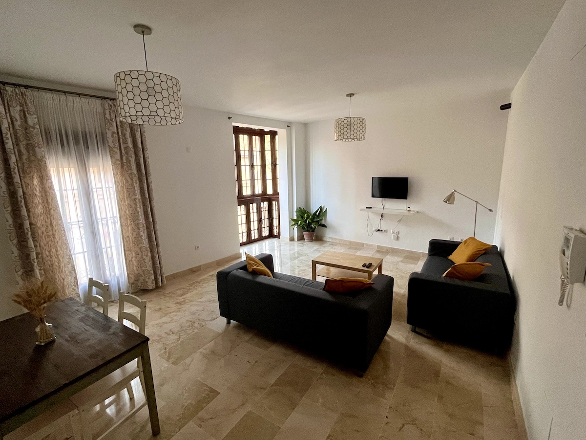 Orlofsíbúð í sögulega miðbænum, innifalin í vegg borgarinnar Antequera, í 2 mínútna göngufjarlægð frá Alcazaba, 5 mínútur frá miðbænum. Antequera er borg þar sem þú getur fundið frábæra staði og minnismerki sem talin eru á heimsminjaskrá, svo sem Torcal de Antequera, dolmens eða óteljandi og fallegar kirkjur þess. Að auki er borgin staðsett í miðbæ Andalúsíu, með aðgang að stórum borgum í um 1 klukkustundar fjarlægð með bíl.