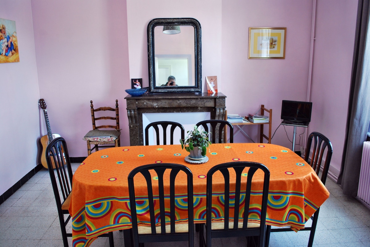 Un air de campagne deux chambres indépendantes.avec cabinet de toilette comprenant douche et WC ; d'une capacité de 1 à 4 personnes. il est proche du centre ville . Vous l'apprécierez pour l'emplacement, ,il est parfait pour une famille, les couples, les voyageurs en solo , d'affaires. Moins 30€ sur votre séjour si vous n'occupez qu'une chambre. un animal peut être accepté après accord préalable il sera demandé une participation forfaitaire de 50€