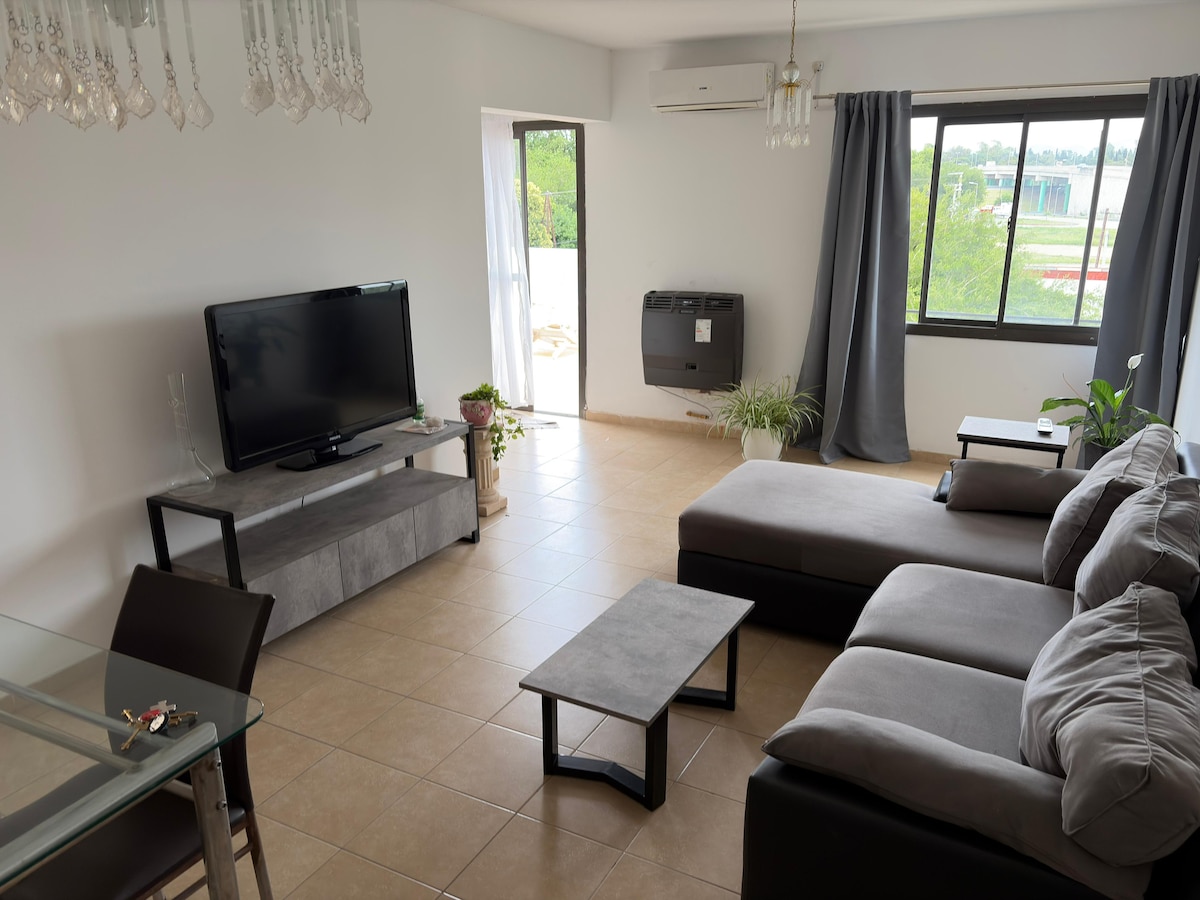 Aftengdu þig frá áhyggjum þínum í þessu rúmgóða og kyrrláta rými. Mælar frá Orfeo, Complejo Super Mami, Paseoeta Lugones. Íbúð í háum, silfurgráum húsi með sérinngangi með tröppum. Staðsetningin gerir þér kleift að komast fljótt og auðveldlega að afþreyingarmiðstöð, verslunum, flugvelli og fjallasvæðum. Nokkrar mínútur frá Kempes-leikvanginum.