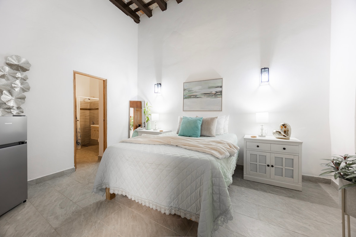Verið velkomin í glæsilega borgarafdrepið okkar í hjarta San Juan. Þetta nútímalega hótelherbergi er hannað fyrir bæði þægindi og fágun og býður upp á hnökralausa blöndu af nútímalegri hönnun og hlýlegri gestrisni. Hótelherbergið okkar er með fallegan bakgrunn sem bætir töfrum við dvölina. Upplifðu þægindin með mjúku rúmfötunum okkar, hágæða rúmfötum og vönduðum húsgögnum. Vertu í sambandi með háhraða þráðlausu neti, horfðu á uppáhaldsþættina þína eða kvikmyndir í snjallsjónvarpinu