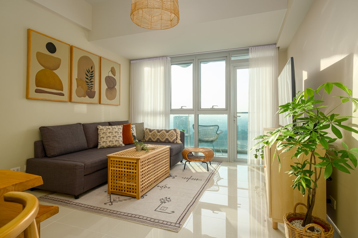 Bókaðu þessa lúxusgistingu í miðborg BGC. Allt er í aðeins nokkurra skrefa fjarlægð. Prime offices and high end malls around Uptown Parksuites. Upplifðu heimsborgaralegt frí í Uptown Mall. Kynnstu einstökum hugmyndum um mat og verslanir. Skemmtu þér á bestu börunum við dyrnar hjá þér. Slappaðu af í nútímalegu svefnherbergiseiningunni okkar frá miðri síðustu öld. Meðal þæginda eru 55 tommu SNJALLSJÓNVARP, 400 MB/S internet og rannsóknarsvæði. Njóttu þægilegrar og stílhreinnar upplifunar á þessum miðlæga stað.