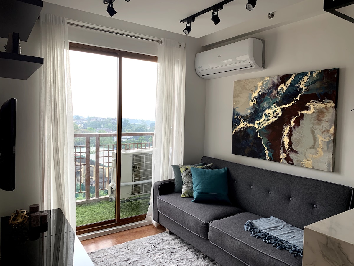 Vertu stílhrein og upplifðu BGC stemninguna á þessum stað miðsvæðis. Fáðu beinan aðgang að Uptown Mall. Þetta er einnig rétt hjá hinni nýopnuðu Mitsukoshi-verslunarmiðstöð. Nýuppgerð eign okkar er björt og rúmgóð með frábæru útsýni yfir Uptown Mall gosbrunnasýninguna. Farðu í rólega gönguferð þar sem allir helstu áhugaverðir staðir eru í nokkurra mínútna göngufjarlægð. Finndu orku Uptown BGC. Verslaðu, borðaðu eða slakaðu á á kaffihúsinu á horninu. Komdu og finndu orku þessa líflega samfélags!