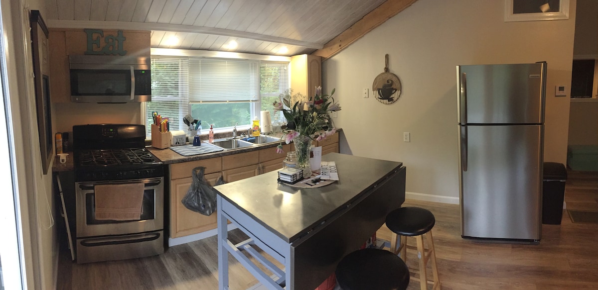 Þessi 56 fermetra nútímalegi og notalegi lítil íbúðarhús með hálf-einkaaðgengi að bryggju er fullkomin fyrir fjölskyldur eða pör sem vilja komast í burtu og slaka á við fallega Greenwood-vatn, í hjarta Hudson-dals. Húsið er í steinsnarstöðu frá vatninu. (Um 45 sekúndna göngufjarlægð, fjórða húsið til baka við götuna.) Innréttingarnar eru fágaðar en þó þægilegar og afslappaðar og það er nóg pláss bæði inni og úti til að láta þér líða eins og heima hjá þér. Leyfisnúmer fyrir skammtímaútleigu í Town of Warwick: p25-0572