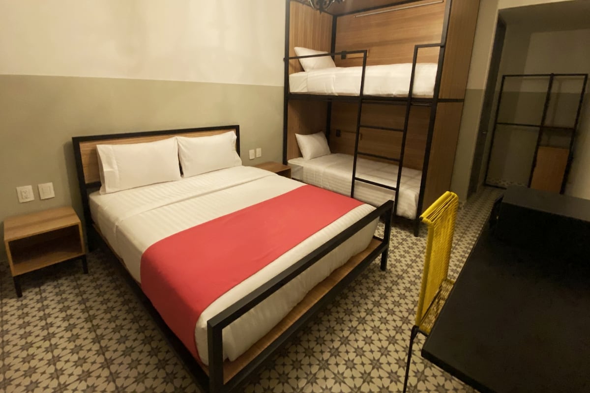 Nuestra ubicación en el corazón de la ciudad, "el Centro", hace que todos los que se alojan con nosotros se sientan parte de nuestra cultura desde el primer momento. ✨ Incl. Desayuno Buffet (7:00 - 10:30 a.m.), Wifi, GYM y Estacionamiento. -Estadio GNP Seguros (Foro Sol), Autódromo Hnos. Rodríguez 🏁, Palacio de los Deportes (9.5 km) -Estadio Banorte (Azteca) 1 h 2 min (20.9 km)⚽ -Teatro Metropólitan -AICM (9.3 km) -CAS (2.8 km) -Palacio de Bellas Artes -Zócalo CDMX -(Av. P. Reforma)