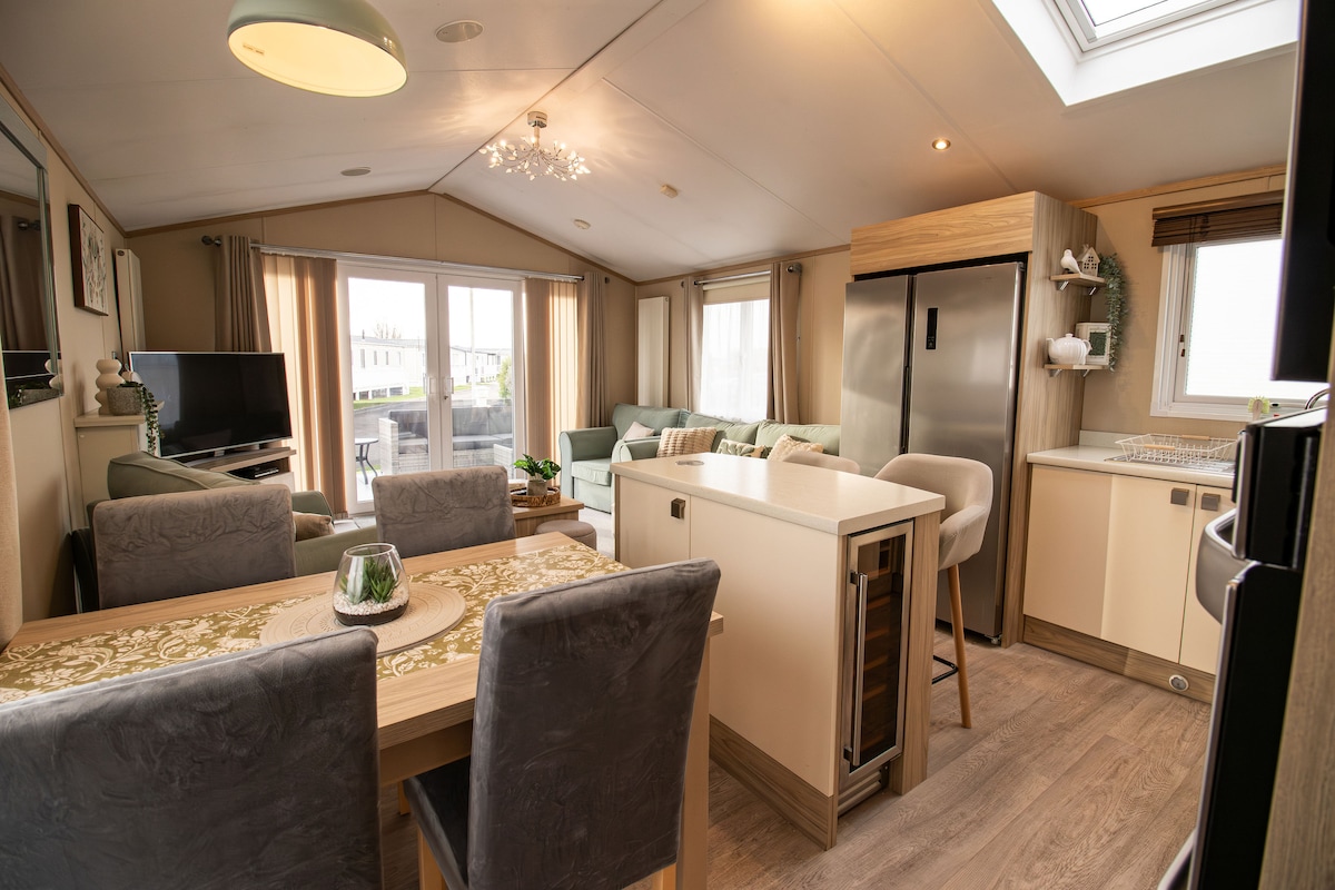 Starlings Nest at Hamilton Lodge is the perfect place for your next Home from Home break with a touch of luxury! Sleeping 6 with beach within a few mins stroll & all on-site amenities of both Whitehouse Leisure Park & Golden Gate in Towyn. Twin & king bedrooms, sofa bed in lounge, two full shower rooms. Spacious open plan lounge/dining/kitchen with kitchen island, dishwasher & washer. South facing wrap around decking with seating, Smart TV's, bedding, Netflix, Disney+, private parking & Wi-Fi.