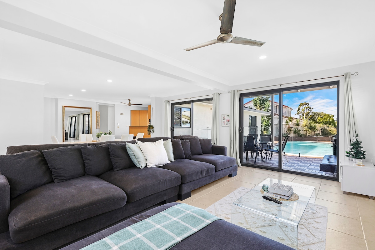 Welcome to your amazing centrally located, south-west facing luxury waterfront home. With open-plan living that flows seamlessly onto an expansive outdoor alfresco area, you'll enjoy breathtaking waterfront views, a sparkling swimming pool, and a private jetty, all while being just moments away from the best the Gold Coast has to offer. This fully equipped and stylish home is your home away from home—all you need to do is unpack, relax, and enjoy the ultimate coastal lifestyle