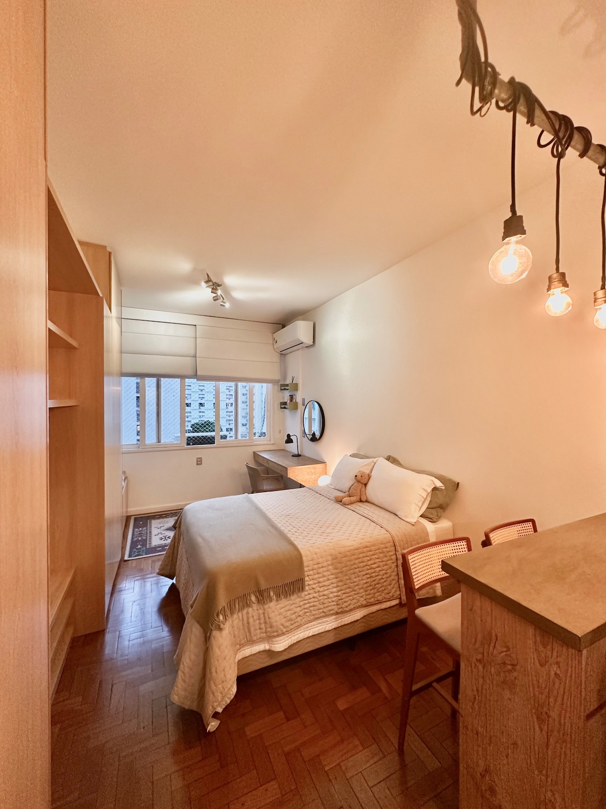 Öruggur staður með sólarhringsþjónustu sem tekur vel á móti þér! 30m² með eldhúsi, svefnherbergi með king-size rúmi, stofu með tvöföldum svefnsófa og baðherbergi REFORMADO EM 24. SEPTEMBER Íbúðin var öll hönnuð til að taka á móti þér og láta þér líða eins og heima hjá þér í Rio de Janeiro. Notalegt og notalegt rými, það er mjög vel búið og er steinsnar frá áhugaverðum stöðum eins og Ipanema ströndinni, Leblon ströndinni, Rodrigo de Freitas Lagoon og Arpoador. Staðsett á milli posto 10 (ipanema) og posto 11 (leblon)