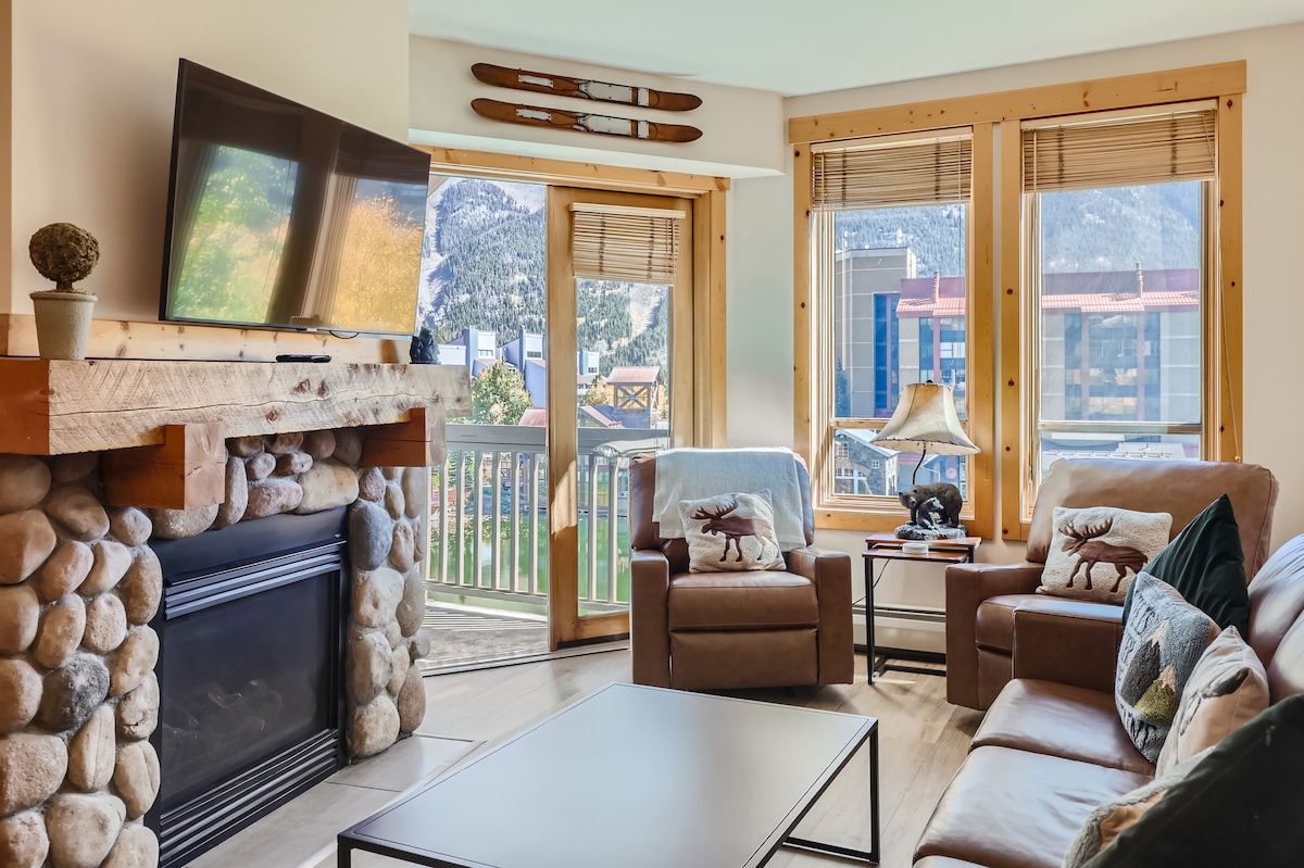 Flýðu til glæsilegrar *nýuppgerðar* lúxusíbúðar okkar í Center Village í Copper Mountain! Það bíður þín stórkostlegt útsýni yfir brekkur og lyftur, lífleg afþreying í þorpinu og nútímaleg eign með mikilli náttúrulegri birtu. Njóttu fullbúins eldhúss, rúmfata, þægilegs svefnherbergis með king-size rúmi og baðkars/baðsturtu á baðherberginu ásamt öllum nýjum, uppfærðum hágæðahúsgögnum, þar á meðal uppfærðum svefnsófa með minnissvampdýnu. Eftir dag í skíðum, göngu eða á hjóli getur þú slakað á við notalegan gasarinn,