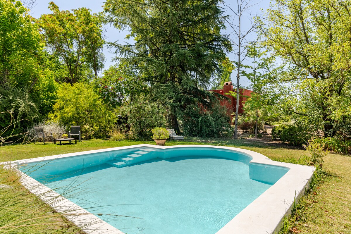 A unique place. A space to fully experience. 13 km from the city of Mendoza and within the "Wine Roads" circuit. With a private exit, exclusive covered garage, excellent Wi-Fi, a queen-size bed, en suite bathroom, TV, refrigerator, electric oven, microwave, electric kettle, bed and bath linens, and pool towels. We also include a split-screen TV and a safe. We continue to add comfort and tranquility to make your stay in our space unforgettable.