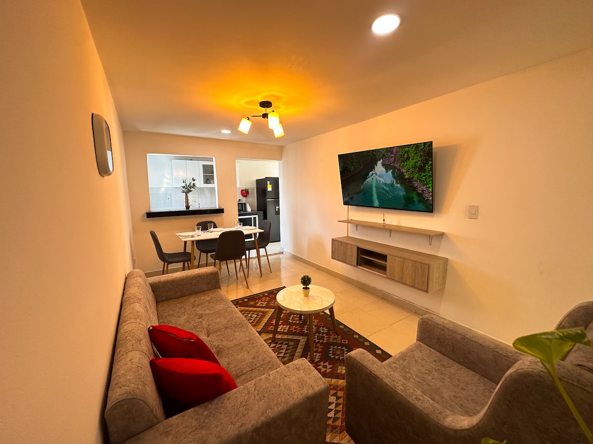 Nútímaleg og notaleg íbúð sem er fullkomin fyrir þá sem vilja þægindi með glæsileika. Staðsett á þægilegum stað nálægt Montería Transportation Terminal, verslunarmiðstöðvum og í gegnum flugvöll. Njóttu fágaðs, nútímalegs og útbúins rýmis með öllum nauðsynlegum þægindum fyrir notalega dvöl, hvort sem það er fyrir fyrirtæki eða ferðamennsku. Tilvalið fyrir ferðamenn sem kunna að meta stíl, þægindi og stefnumarkandi staðsetningu.