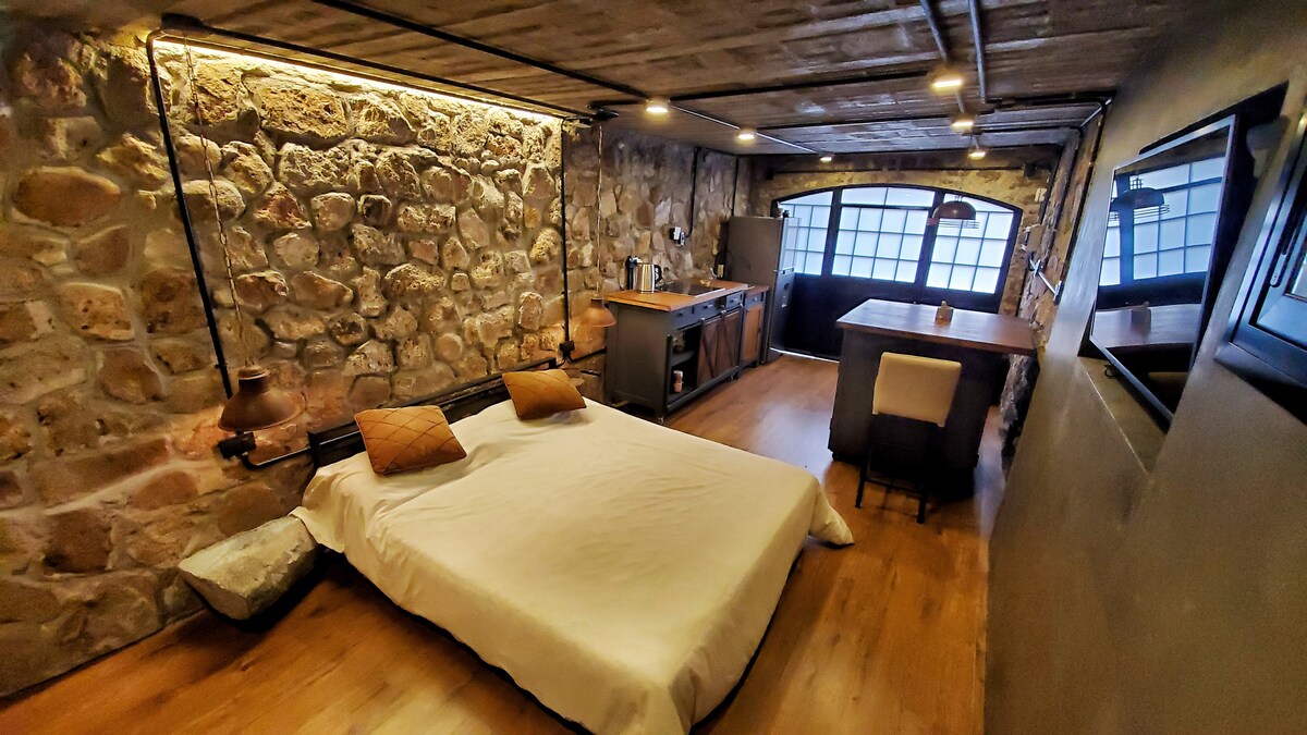 Í 6 mínútna fjarlægð frá gúrkunni týnist þú í steinhúsi með flögnuð niður að ánni og aðgang að vatninu. Ný eining með öllu úrvals, lofti, rafmagnsinnleiðslueldhúsi, snjöllu gleri, SUP og risastórum heitum potti utandyra. Það er staðsett í 3500 metra eign sem þú deilir með aðeins tveimur tjöldum mjög langt frá húsinu. Tilvalið fyrir pör sem vilja upplifa einstaka stund í miðri náttúrunni en nálægt öllu. Ég er ofurgestgjafi. Skoðaðu athugasemdirnar. Það er töfrum líkast!