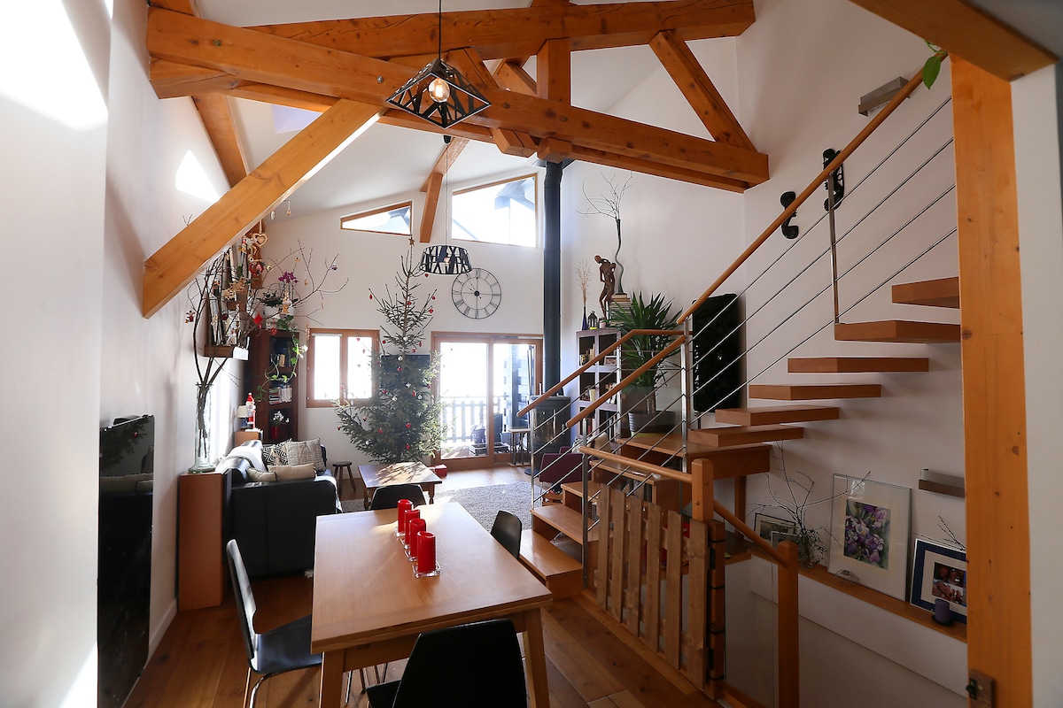 Located at an altitude of 1,189 meters within a former mountain farmhouse, this charming 110 m² apartment can accommodate up to six guests. The open-plan kitchen connects to a spacious living area with exposed beams and a beautiful wood-burning stove. A private jacuzzi, terrace, balcony, and Wi-Fi access complete these high-end amenities, ensuring an exceptional stay where the breathtaking view of the Mont-Blanc massif will leave you with unforgettable memories.