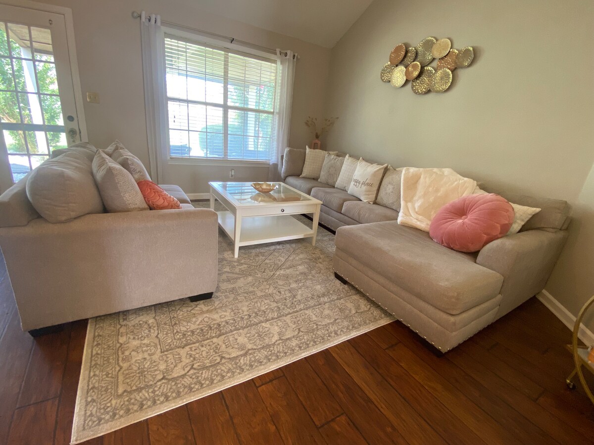 Slappaðu af á notalega heimilinu okkar miðsvæðis í sætu Cordova-hverfi með meira en 1200 fermetra út af fyrir þig. Staðsett í þriggja mínútna fjarlægð frá Whitten Rd-útganginum á I-40 og í minna en 25 mínútna fjarlægð frá flestum helstu áfangastöðum Memphis, þar á meðal Graceland, Beale Street, Civil Rights Museum, Sun Studio, FedEx Forum, Bass Pro Shops at the Pyramid and the Memphis Zoo! Aðeins nokkrar mínútur frá Germantown Pkwy, Ikea, Wolfchase Mall og öllum verslununum!