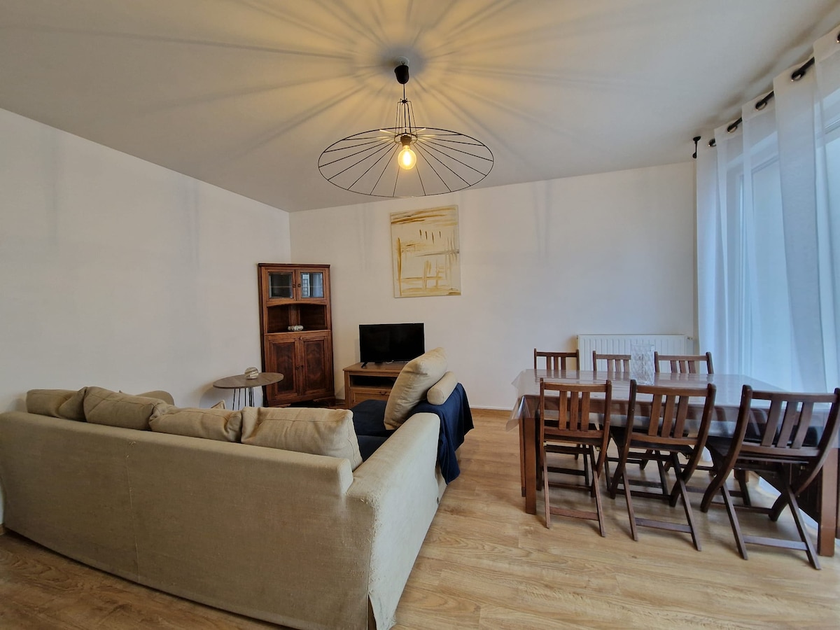 Við tölum ensku! Við setjum til ráðstöfunar þessa fallegu íbúð, endurnýjuð og skreytt með smekk, til að fullkomna dvöl þína! Þú verður í 5 mínútna göngufjarlægð frá dómkirkjunni og miðborginni. Njóttu nálægðarinnar við miðborgina á meðan þú nýtur kyrrðarinnar og hlýlegs umhverfis. Rúm sem eru gerð við komu. Handklæði fylgja. Þráðlaust net, sjónvarp, Netflix, Spotify, uppþvottavél, þvottavél, Nespresso-kaffivél. Öll okkar góðu heimilisföng í litlum leiðsögumanni ... Te og kaffi að vild.