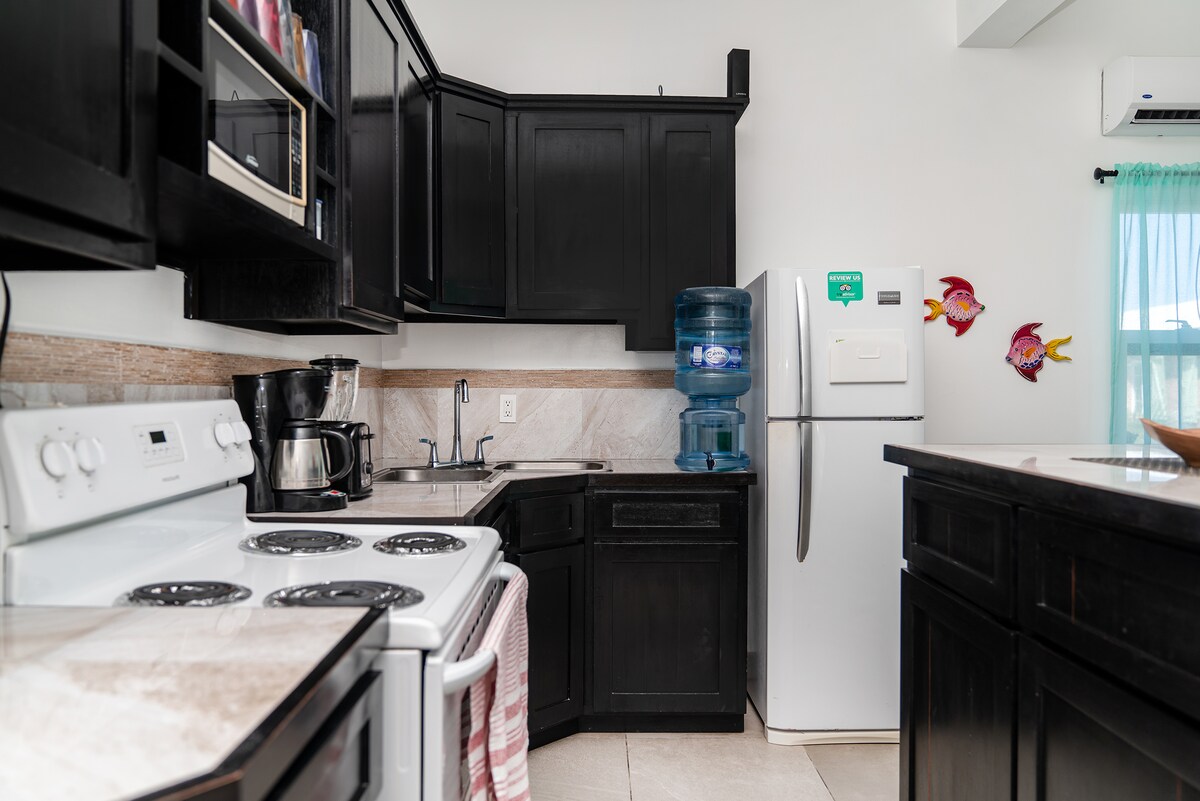 Mermaid Manor er algjör paradís! Þú munt njóta útsýnisins yfir fallega hafinu, hafmeyjueyju og ótrúlega sundlauginni með fjórum sætum í lokin til að drekka úr eða kaffi. Leigan inniheldur rómantískt queen-rúm, eldhús með glænýjum ísskáp, ofn, örbylgjuofn og skrifborð. Útilíf og borðstofa með útsýni yfir hafið. Niðri er úteldhús með grill. Sjávarhlið villunnar snýr að sjónum og það er stöðugt sjávargolið í gegnum glerlok. Endurnýjið hjónabandslöftin eða giftist hér.