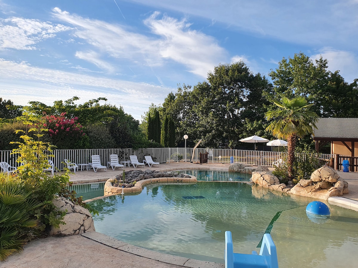 Moulin aux Ans er staðsett í hjarta Périgord Noir og tekur á móti þér í 5 bústöðum á öllum árstíðum. Nestled í grænu umhverfi þar sem alls staðar ríkir galdur vatnsins, það mun tæla þig með fegurð þess, ró og áreiðanleika þess. Skrifstofan er steinsteypt bústaður fyrir 2 manns, sem samanstendur af stofu (útsýni yfir biefinn) með fullbúnu eldhúsi, svefnherbergi (1 rúm í 140), baðherbergi með salerni og svölum með garðhúsgögnum og grilli.