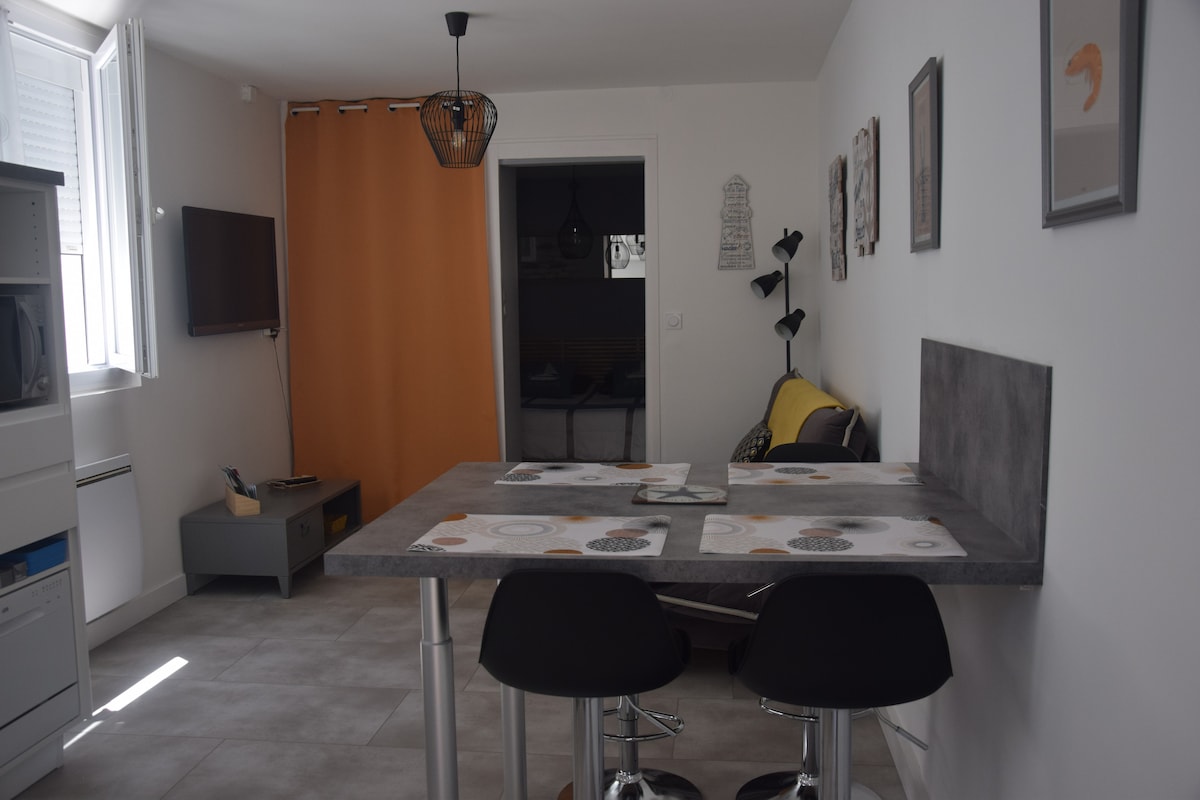 Hús á 40 m² nýuppgert 200 m frá ströndinni og 200 m frá verslunum á rólegu götu. Í þessu húsi finnur þú öll þægindin. -A herbergi með fataherbergi og rúmi 160*200 -Stofa með 140*190 svefnsófa, flatskjásjónvarpi og interneti. Fullbúið eldhús (helluborð, ísskápur, örbylgjuofn, þvottavél, Senseo kaffivél. ) - Baðherbergi með salerni, sturtuklefa og hégóma - A verönd með borðstofu - Garður sem er 60 fm (60 fm)