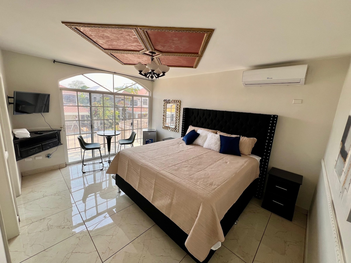 Suite #5 Estudio, cama Queen y seguridad.