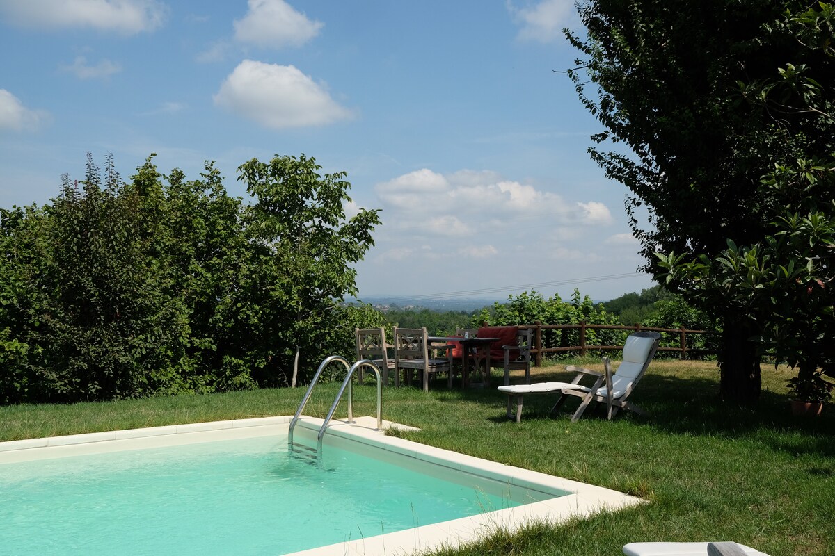Algjörlega endurnýjuð villa á Unesco-svæðinu í Monferrato. Vín og matur koma þér á óvart! Verið velkomin í heillandi sveitahúsið okkar. Njóttu upphituðu sólpallsins í sundlauginni (apríl-október), slakaðu á í garðinum og á veröndinni og hladdu rafbílinn þinn með veggkassa. Tvö mismunandi eldhús gera þér kleift að borða notalegan kvöldverð eða borða með öllum vinum þínum. Njóttu borðtennis, poolborðs, borðfótbolta, trampólíns, grills og reiðhjóla! Sérstök stofa fyrir börn! Kokkur í boði!