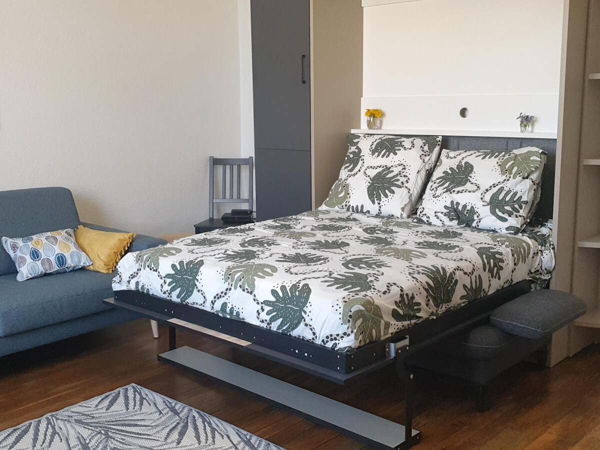 Sjálfstætt fullbúið stúdíó á 3. hæð í lítilli byggingu (engin lyfta), hljóðlega staðsett nálægt Longwy lestarstöðinni (minna en 15 mín ganga með beinni lest til Lúxemborgar), bílastæði fyrir framan. Staðsett á móti strætisvagnastöð. Íbúðin samanstendur af fullbúnu eldhúsi (helluborð, ísskápur, kaffivél, ketill, örbylgjuofn, þvottavél), aðalherbergi með einbreiðu/hjónarúmi, stórum fataskáp, borði, tveimur stólum og sjónvarpi,
