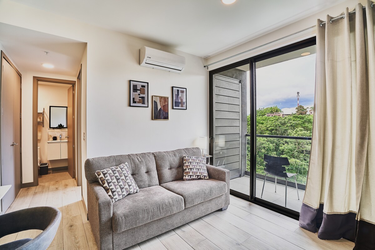 Vive la experiencia de hospedarte en un edificio único de 32 pisos a solamente 200 metros del Parque Metropolitano de la Sabana (mejor ubicación en San José) disfrutarás de sus más de 20 amenidades, las vistas panorámicas de San Jose y sus montañas y te vas a cautivar por los detalles decorativos que verás en cada rincón. ***Aeropuerto Juan Santamaria a solamente 10 millas***