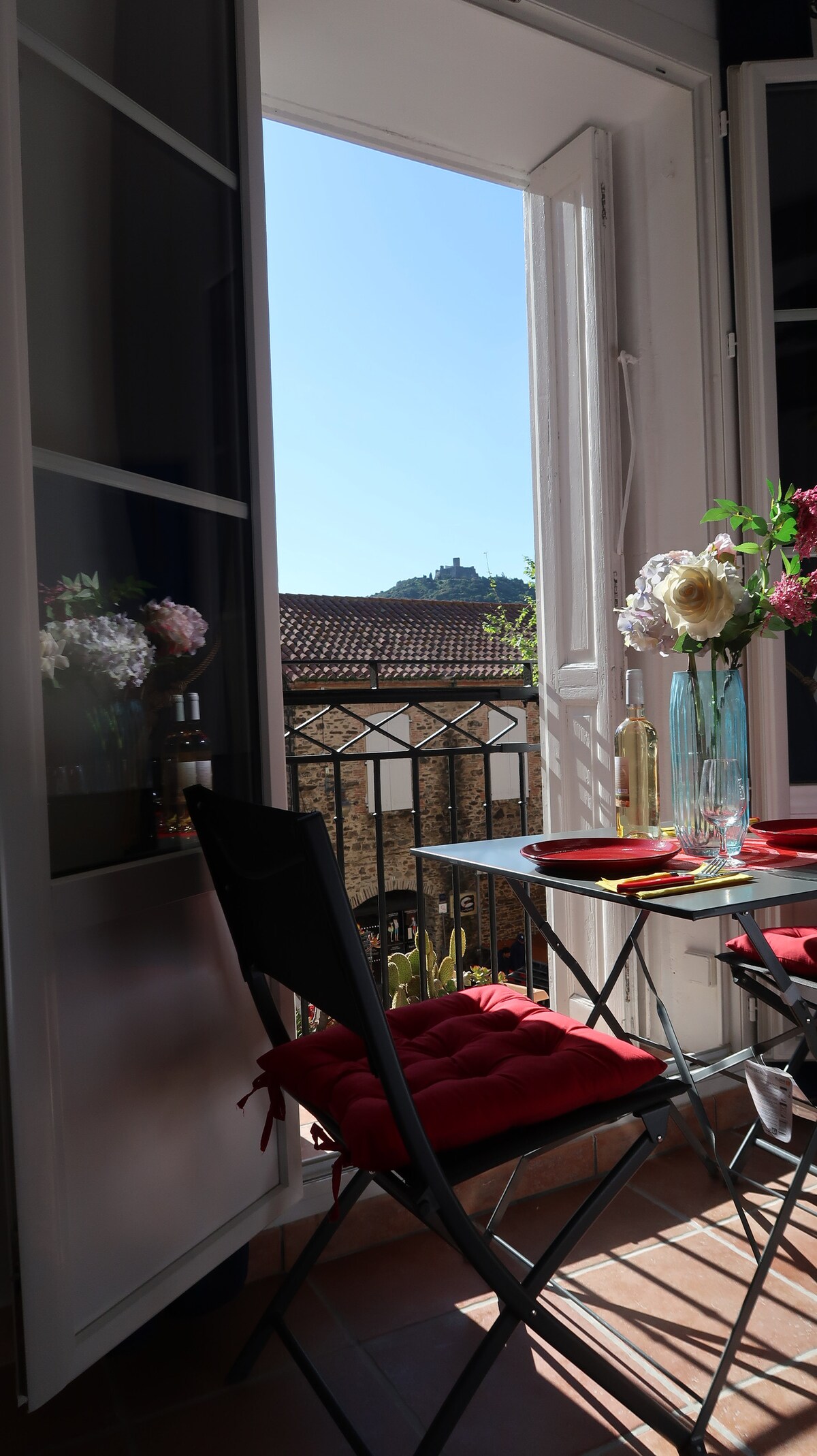 Catalan style home with scenic views and steps from the beach. Our air-conditioned studio was recently renovated, and includes a juliette balcony overlooking the main square of Collioure, with views of the medieval castle, fort, mountains and beach. The decoration inspired by Catalonian art will immerse you in an unforgettable, romantic experience. Queen size (160cm) bed with premium bedding, high speed WiFi, Smart TV, kitchen, washing machine, and luxury shower for maximum comfort.