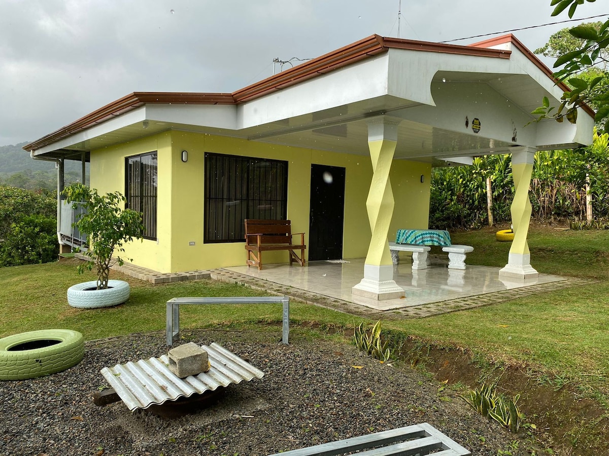 Fjölskyldan þín verður nálægt öllu þegar þú gistir í þessari gistingu miðsvæðis. Á sama tíma ert þú á stað sem er fullur af náttúru, afskekktur með öllum þægindum. Komdu með fjölskyldu þinni, vinum og gæludýrum. Við bjóðum þér fullbúið hús með öllu sem þú þarft fyrir fjölskylduna. Héðan er klukkustund í Paso Canoas. Á 30 mínútum að Union eða Sereno. Og til Golfito á 1:40 m. Fullkomið rými fyrir þá sem vinna fjarvinnu. Loftslagið er kalt. Við hlökkum til að hitta þig