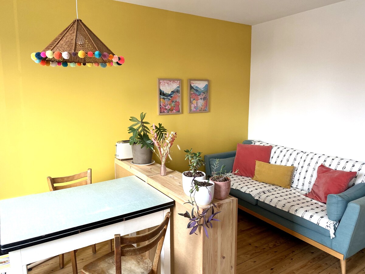 Heillandi 35 m² íbúð á fyrstu hæð í gömlu húsi á rólegu svæði í Le Mans. Þessi staður er algjörlega endurnýjaður af listamanni og er sannkallaður samleikur þar sem samhljómur og þægindi blandast saman. Það er bjart, friðsælt og vel útbúið. Það felur í sér stofu með setusvæði, fullbúið eldhús og afslappandi svefnherbergi með nútímalegu baðherbergi. Tilvalið til endurnæringar eftir virkan dag. Nálægt miðbænum og samgöngum. Fyrir einstakling eða par