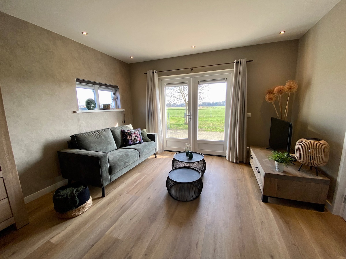Ons gezellige achterhuis heeft en frisse, eigentijdse uitstraling. Op de begane grond bevinden zich kamer, keuken, badkamer met toilet. Boven bevinden zich twee slaapkamers, waarvan één kamer waarin het 2-persoonsbed staat. Alle bedden hebben M-line matrassen. Het is gevestigd in ons boerderijtje waar we zelf wonen met onze lieve labrador Saar. Op het erf hebben wij twee ezeltjes en kippen. Er is een tuin met verschillende zitjes, waaronder één met een vuurplaats en uitzicht op de landerijen.