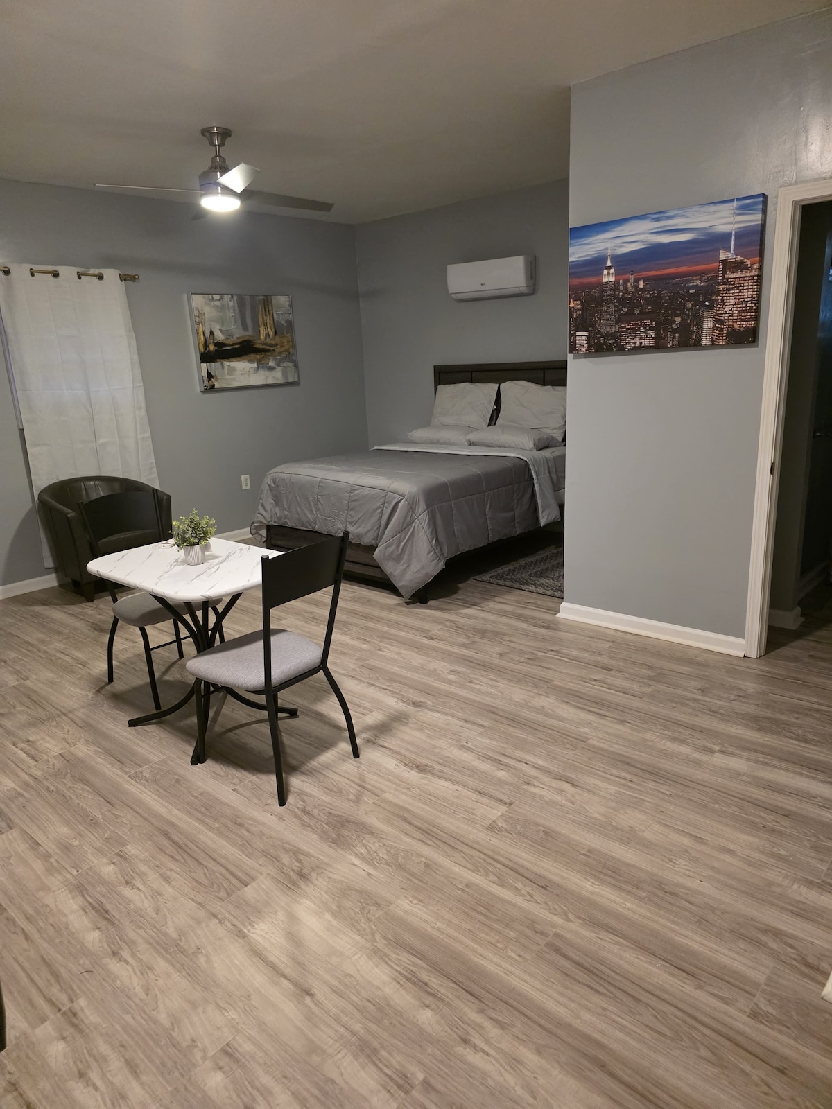 Njóttu kyrrðarinnar, yndislega gestaheimilisins okkar. Þetta 1 svefnherbergi (1 king bed) 1 fullbúið baðhús með tækjum úr ryðfríu stáli, uppþvottavél, örbylgjuofni, kaffivél og þvottavél/þurrkara. Eitt sjónvarp í stofunni, þráðlaust net, kapalsjónvarp og viftur í lofti í öllu húsinu. Allt húsið er með parketi á gólfi (ekkert teppi). Bakgarðurinn er með litlu borði og stólum fyrir reykingafólk. Aðgengi gesta Þú munt njóta þæginda við lyklalausan inngang og bílastæði í innkeyrslunni.